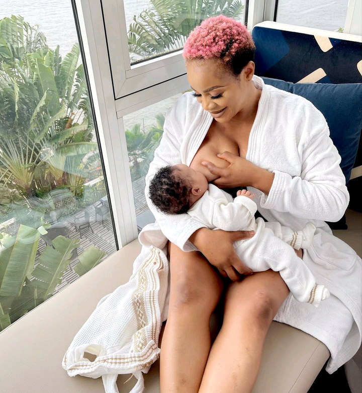 Veteran Nollywood actress, Uche Ogbodo, has taken to her page on Instagram, to grace people's screens with beautiful photos of herself, bonding with her little baby girl while feeding her with natural milk.