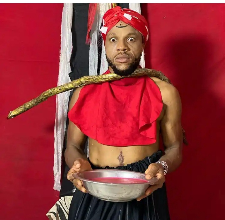Popular Nollywood Actor, Charles Okocha has caused mixed reactions on social media after uploaded one new picture of himself spotted wearing a red cloths as he was holding a pot of ritual with the caption that says that, "If I Don't Get Super Rich After This, I'm Relocating To California Finally"