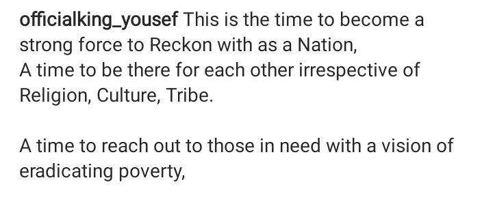 In the post, Yousef urged Nigerians to have each other's back and stand together as one, irrespective of religion, culture and tribe.