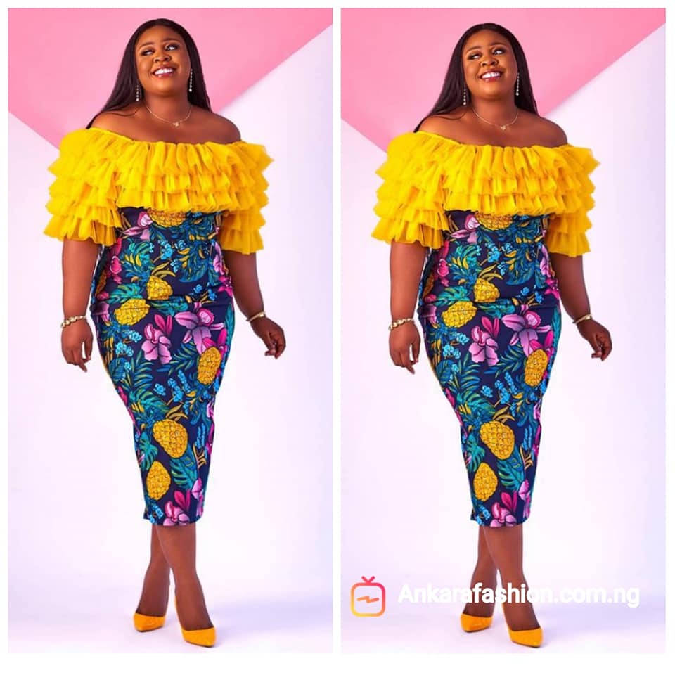 Apart from the normal Ankara dresses like peplum, off-shoulder dresses have become one of the most popular style used in different occasions including wedding celebration and events.