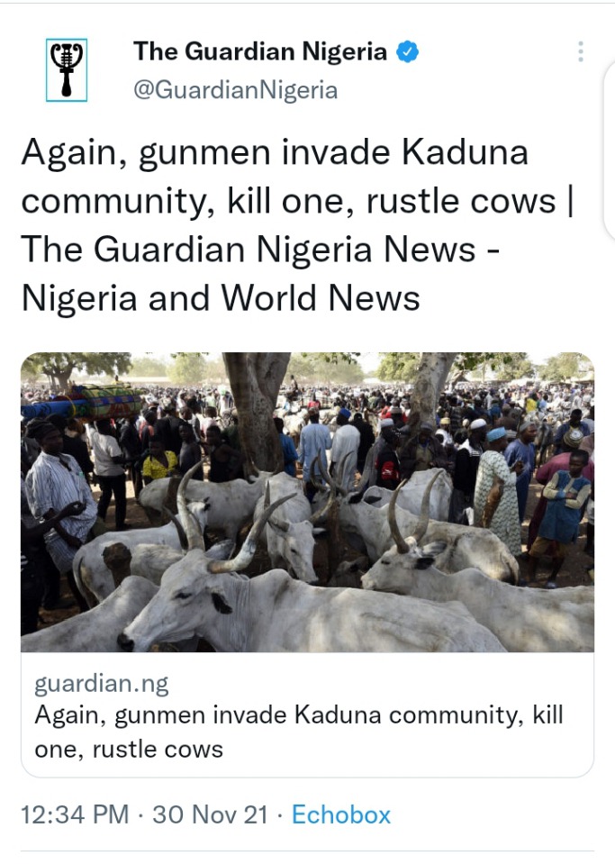 Again, gunmen invade Kaduna community, kill one, rustle cows