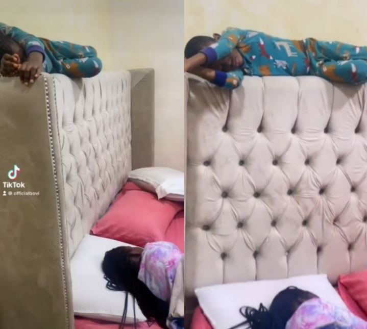 Nigerian comedian, Bovi took to Instagram to share a hillarious video of his son's sleeping position. In the video, the comedian's son is seen sleeping on top of the bed's headboard despite there being enough space on the bed for him.Despite his uncomfortable position, the child appears to be sleeping comfortably."Marvel found ... Proceed to Read Full Article >>