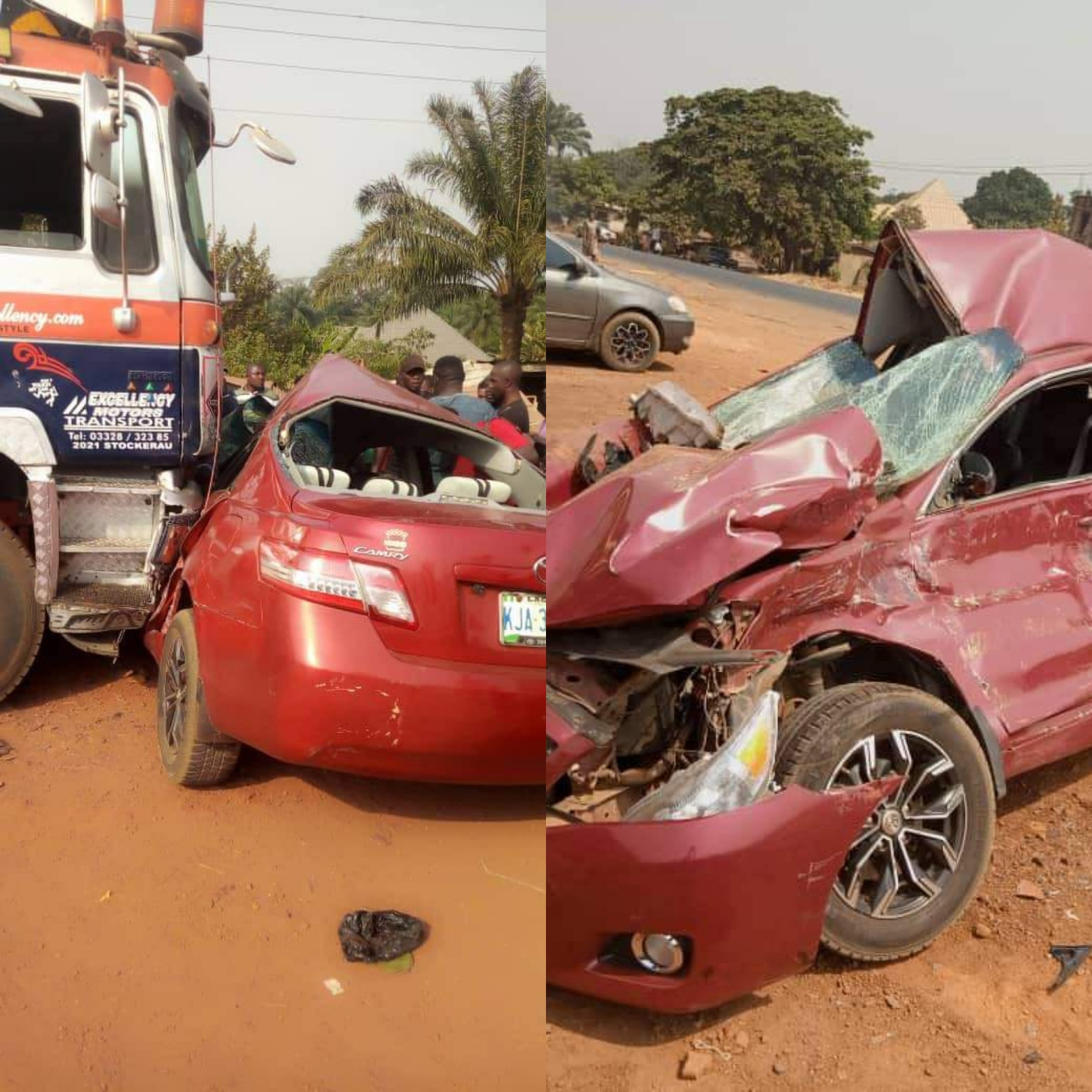 The siblings were in a red Toyota Camry when a trailer carrying goods rammed into their vehicle at Eha-Alumona junction in Nsukka, Enugu State.